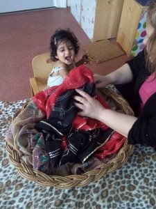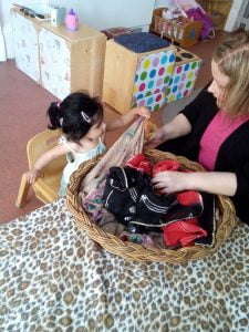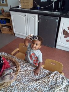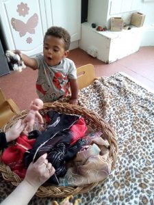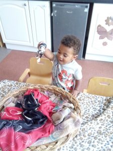 The babies have been using resources around the room (mainly animals as we have a lot of interest at the moment) and hiding objects under materials.