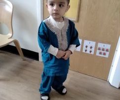 The toddlers attending our Dewsbury nursery have been really interested in observing the caterpillars and have already noticed and commented that they are growing bigger. The toddlers have used green and red fruits to make their own yummy caterpillar fruit kebab. They also used their fingers to make marks in paint to represent their caterpillars.