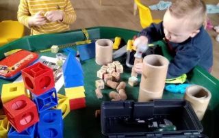 The children in the toddler room have shown lots of interest in building with the loose part large bricks and have built lots of different structures. The practitioners extended the children's interest by creating a small world tuff stop that enabled the children to access more differing sized loose parts, tools, and tape measures. [...]