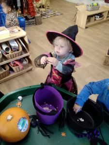 The toddlers really enjoyed exploring all the spooky Halloween objects last week.